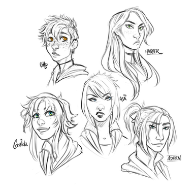 Love their expressions and poses. I especially love the face on the red shirted one, and her hair. And the little details are great-- the fingernails and the little pointed ears make me smile.