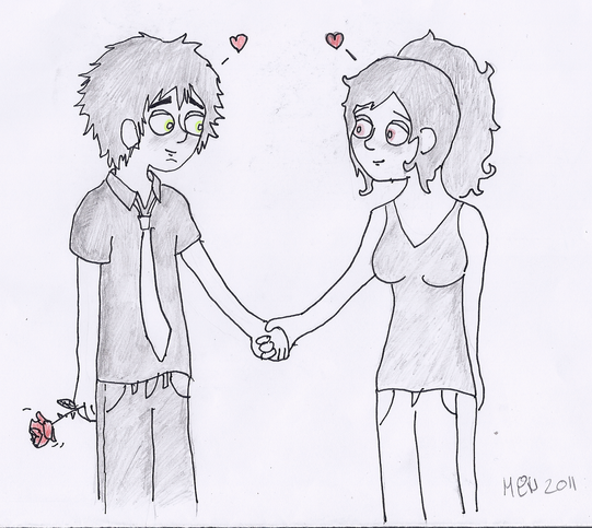 AAAAH! I hate my flesh color crayon >___<Basically it's an old OC called Diego (yeah. I know. Sucks.) who works in marketing industry, and discovers Green Day during a party at one of his workmates'(I don't even know if this word exists...). I think he falls in love with a guy that is dressed like Beej, or something, I said, it's old. I just wanted to pick up the only scene I remember. This one
