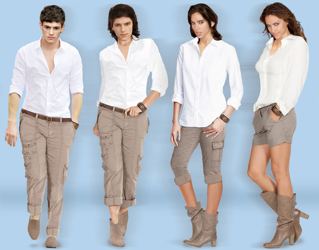 Is it just the clothes at first, or are the corresponding body parts changing at the same time?