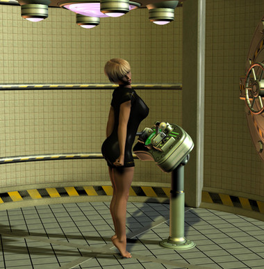 I'm not completely happy with this one, but thats okay, I guess. I do no postwork on these, and it shows.Guy is fiddling around in Dr. Wu's Lab, and it starts to fiddle around with him.