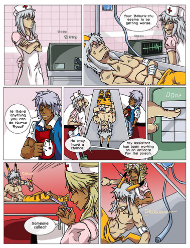 looks like ryo's having a fun time beating the crap out of them 2 after what they have done to him.
