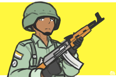 A chinese soldier aiming a portable missile launcher against the backdrop of his flag.Related content