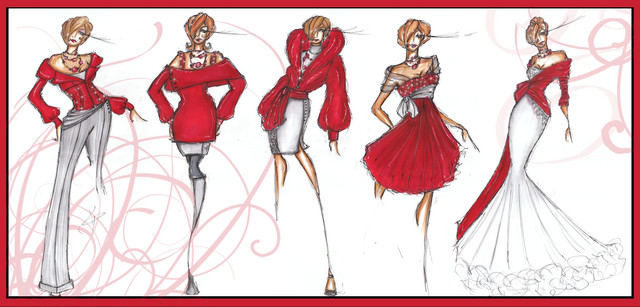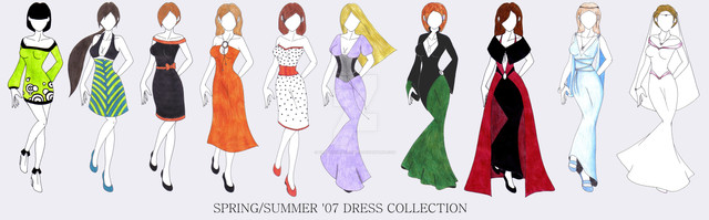 I have to admit, 1,3, and 7 (from the left) are my favorites. But they all look fantastic. Are they real clothes somewhere, or are they just pretty drawings and designs for now?
