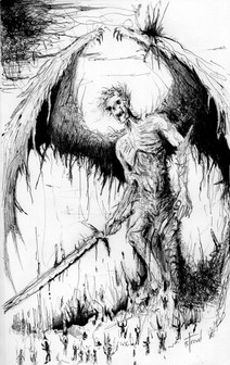 It's stunning and breath-taking. It hits me even harder since it is almost perfectly taken out a very dramatic scene in a story I have been writing. Only difference is that in my story, it was a demon named Dregon who was impaled upon those spikes. He died protecting his kin from renegade angels, a particularly cruel one named Anquis leading them, and his soul came to earth to wait for his beloved, an angel named Alexiel, to find him again.