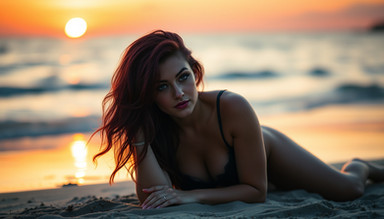 #portrait #photography #beauty #beach #body #glamour #redhair #ai #dreamup #digitalart #dress #portraitgirl #sea #naturallight #ai_art
