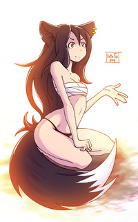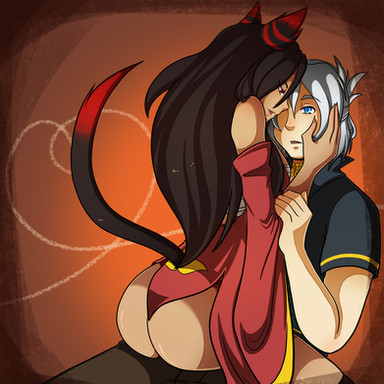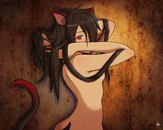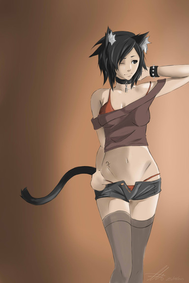 Those eeeeyyyyyes. <3 I love her eyes and her expression. And yes, her bootiful booty. XD Is her tail like a cat's? Ie. Super-sensitive, especially around the base? ;D Good job on this pic!