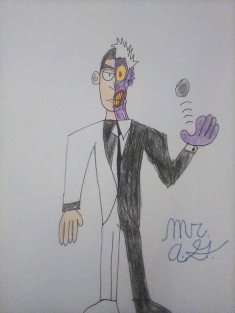 This Batman rogue is part good part bad Harvey DentΒ once friend to both Bruce Wayne and Batman and Gotham and later his other side aka Two-Face!