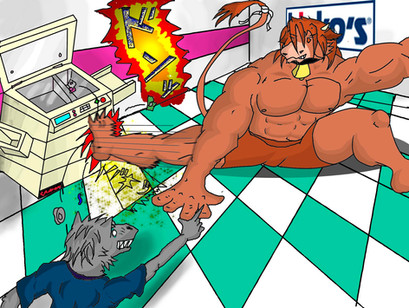 Ok, now we know how I react to a lot of the fetishes and stuff. I fall out of my chair backwards, face-plant the floor, and spill my (imaginary) orange juice. My computer then crashes, both in the computer sense, and the literal sense, falling off the desk, and hitting the floor!Yes, this is what happens when I see freaky furry stuff. Or anything like that in general. Please! As *spacewolfomega says, keep it furry, not freaky!