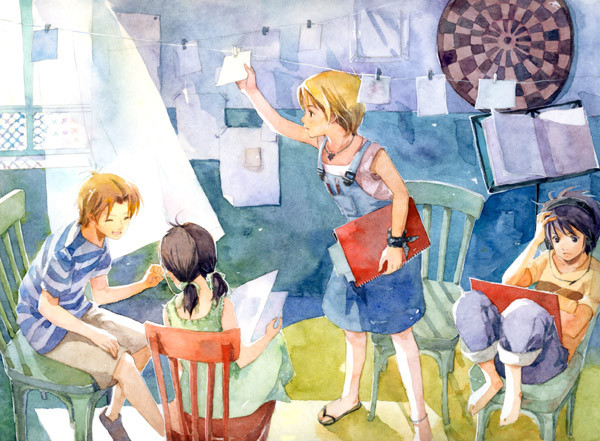 Really like your coloring style--careful and balanced. This piece looks up, from the sparse table to her glance to the playfully escaping balloon. Well deserved DD!