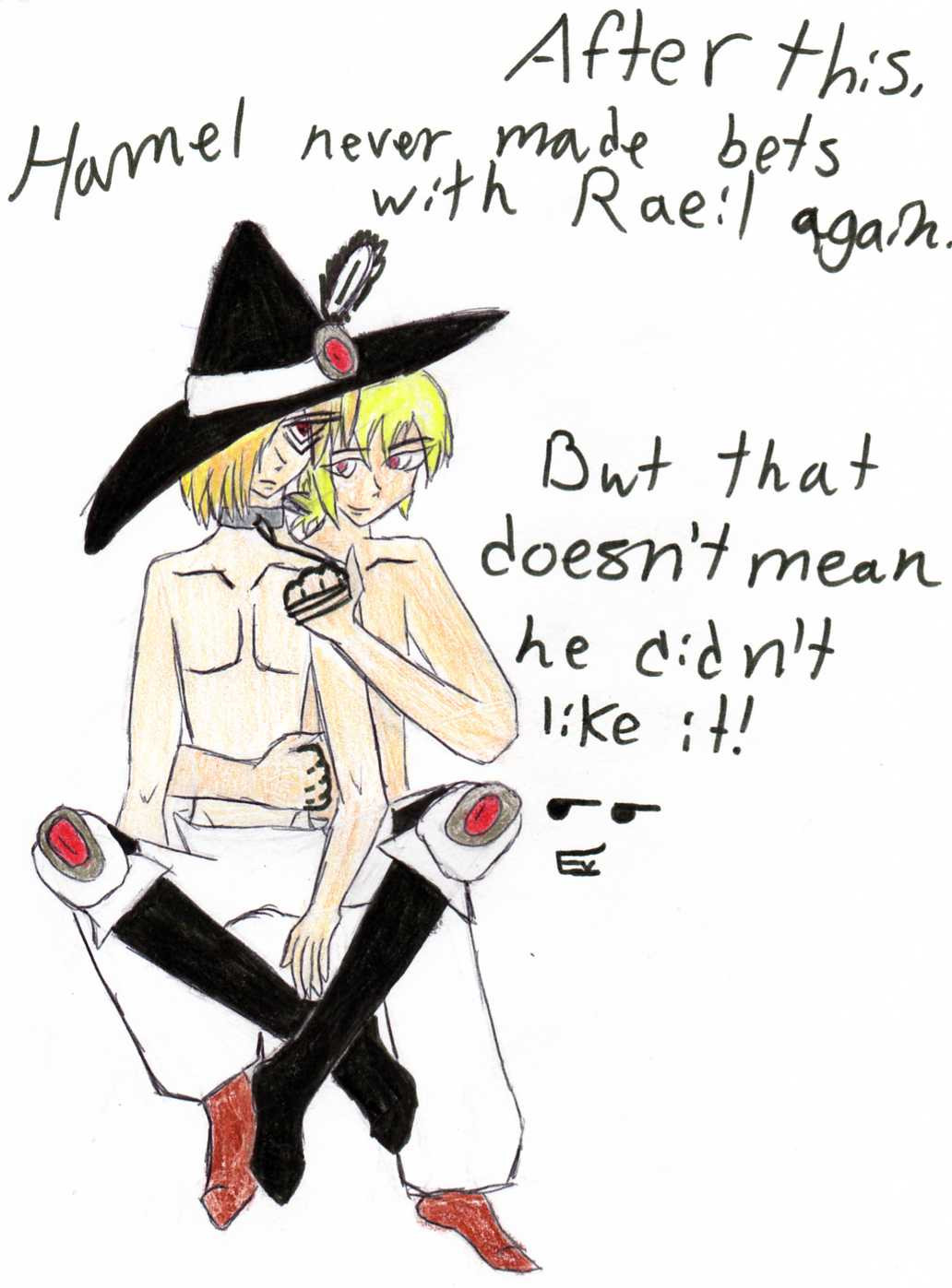 It was just a random drawing I made. The reason I call it Wiccan Web is because her belt buckle and necklace have pentacles on them. Please don't associate it with devil worship. Because they were not originally ment to be associated with devil worship. kthnxbye.....
