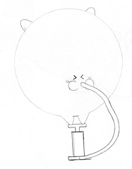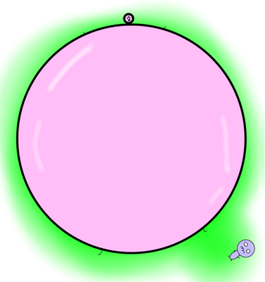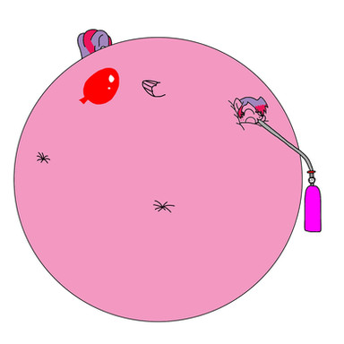 The popping part does hurt him a fair bit. He usually runs out of helium to inflate himself with before his belly starts hurting from being so big.