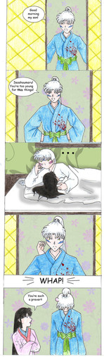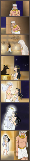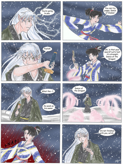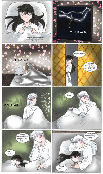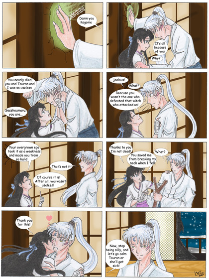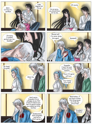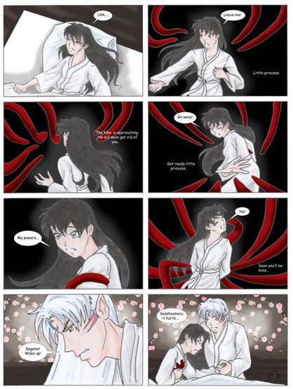 Hrmm ... that's awfully strange that there's no wound ... the only thing I can think of it the Shikon Jewel is inside her and whatever is haunting her dreams knows of it and wants it! *feels proud of self for coming up with that theory* Thank you for updating on time again, it was very nice to come home after spending a long day with relatives to find my favorite comic/doujinshi with a new update!!!
