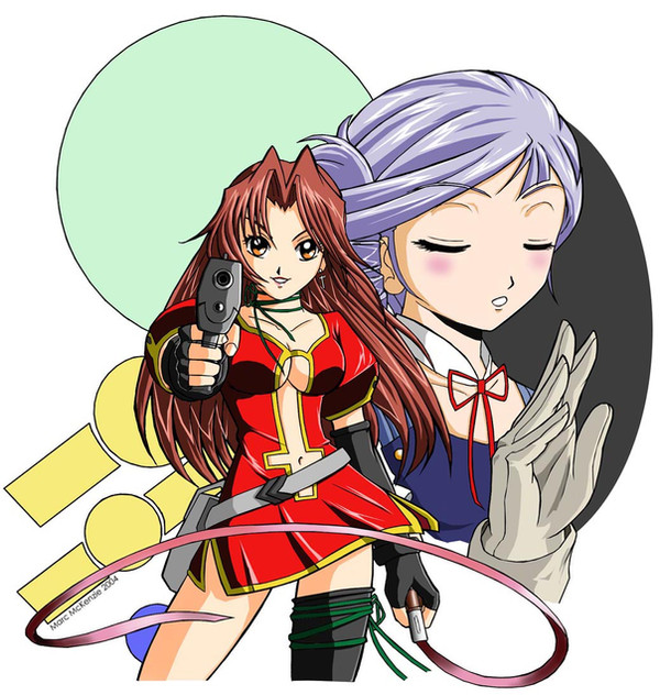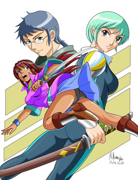These are original characters, created some time ago. This piece actually started out as a sketch and evolved into this. It isn't too bad, but...maybe someday I'll re-do it--punch it up, make it a little more exciting...I'm being a bit harsh here...Please enjoy and comment!