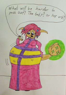 I added the tail as a second thought. Then maid the apparel more like saiyan armor. Before, she was just a preggo in a fighting pose.