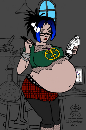 Maybe the crazy hair is one of my 'things'. I know I have a thing for girls with glasses, freckles, a hint of danger, pregnant bellies, a shorter stature than me, and care-free laughs. I do tend to draw a lot of pregnant witch-nerds with predatory grins...