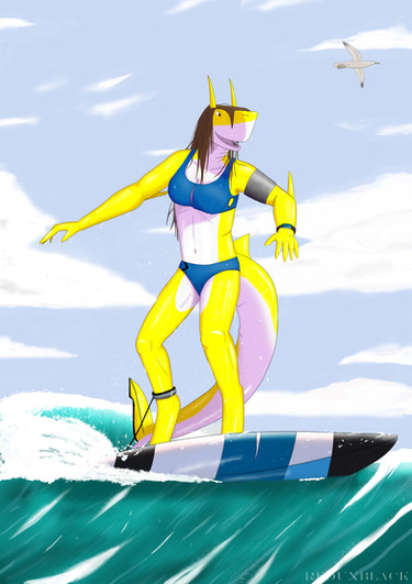 #anthro #clifford #coloredart #digitalart #female #furry #illustration #leana #shark #sharkgirl #silky #softshading #surfing