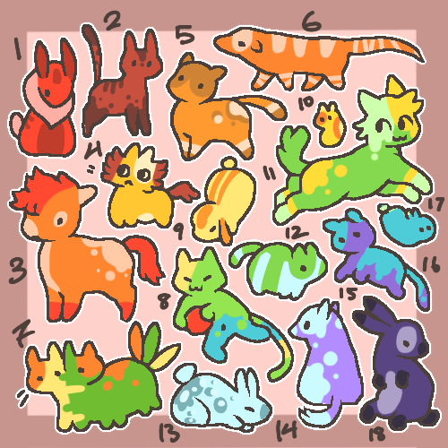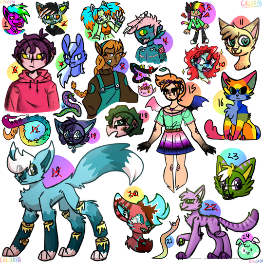 I haven't done one of these in a long time, tried to spend a lot more time on them and i'm pretty proud of how they came out! Will accept USD via Ko-fi or art/customs for them! Please use the number assigned to each character when inquiring so things don't get confusing. I will make you a separate character listing for the trade.