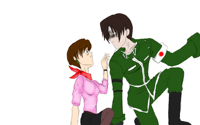 I was going to have Annemarie wear a long sleeved shirt, but I wanted her band to be visible (the band that the three of them got together because of their friendship.) I didn't realize how nice the bands look on them, especially when they are all together xD (this is the first time I've drawn them all together)