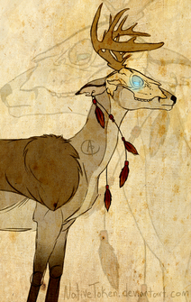 I have found that I actually like drawing deer, I'm not that great at it, but it is still pretty fun.My mom, being the loving and caring woman that she is who always has something encouraging to tell me, thought that it was stupid for a herbivore to have a spear.... then she looked at what was on it as decoration and got it.
