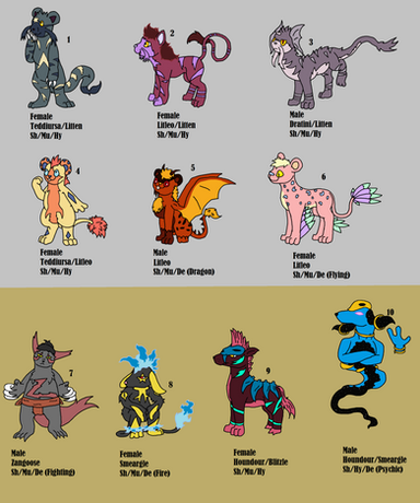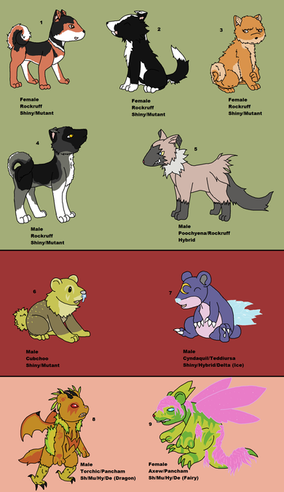 Species Numbers : 3 Hippopotas 1 Sandile 2 Ponyta 1 Cross