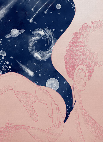 #evening #eveninglight #face #floating #night #nightsky #stars #mermay #dailydeviation #portrait #procreate #upsidedown #dailydrawing #procreateart #mermaychallenge #mermay2023
