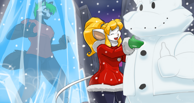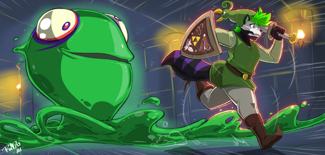 A funny idea I had after playing some old school Legend of Zelda on my emulator.Here we can see ReeFur.... I mean LINK carrying Squeek.... I mean ZELDA away from a angry hoard of chickens. It seems this time princess zelda has attacked one and they are now all after her.
