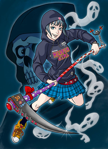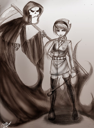 Finished! quick coloring.. sort of.. mandy and Grim from The Grim adventures of Billy and Mandy... Sorry billy someother time ... gave her a new outfit...Pic inspired by the band ( Blue Oyster Cult )