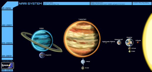 Nrutas (Kepler-186g): A Orange Golden Yellow colored Jupiter/Saturn-like exoplanet with Larged planetary ringed system, and 76 moons. It is name of backwards of "Saturn" is a 6th planet of the Earth's Solar System.