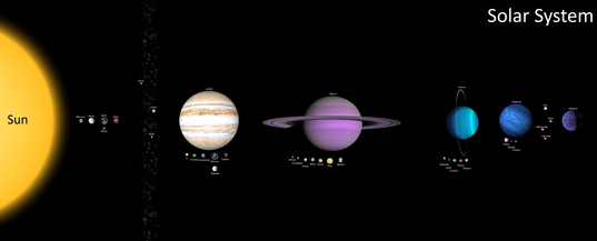 Saturn: A Gas Giant with Planetary ringed system, which it has a total of 83 moons, it is a major moons such as, "Mimas", "Enceladus", "Tethys", "Dione", "Rhea", "Titan" and "Iapetus".