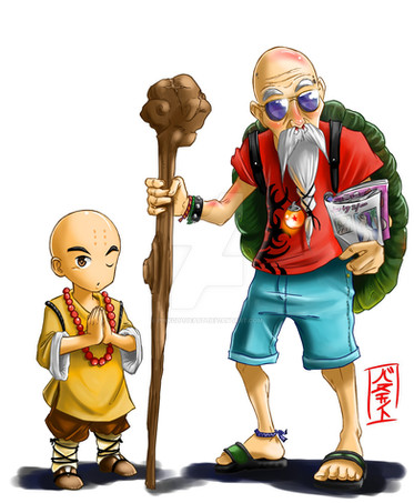Peace! I adore Master Roshi even if he is an extreme perv. I really like what you did with the background brush strokes.