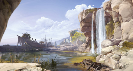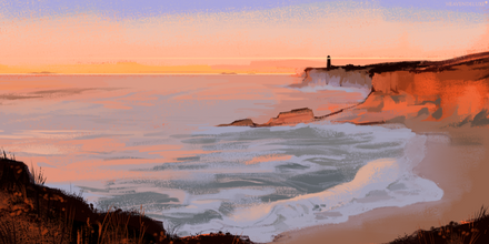 #background #beach #beacon #cg #clouds #digitalart #environment #grass #illustration #landscape #light #mountains #painting #refiend #rocks #sand #sea #summer #sun #sunset #warp #water #waves #art #overcast