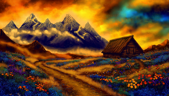 Such a striking artwork..Liked it a lot. And the snow tipped mountains in the background make a nice contrast to the foreground.