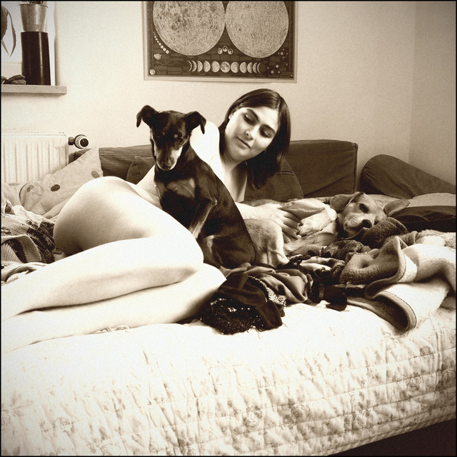 I like this picture alot actually...doesn't look to badly...though I'm sure some touchy people would say so.....It looks more like comfort and love....just simply a woman and her faithful companion togather. *Faves* Very very good....