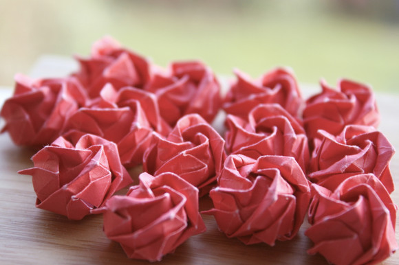 These are not origami nor are they the same roses. Sorry