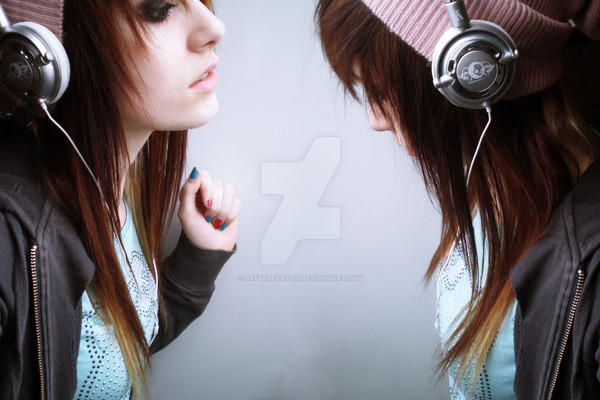 Interesting positioning of the separate images, and the images themselves almost seem to be opposites, where the left one has a sense of timidity, but the right one is extremely sensual, almost lustful. Very nicely done.