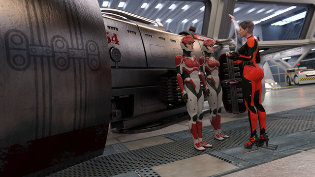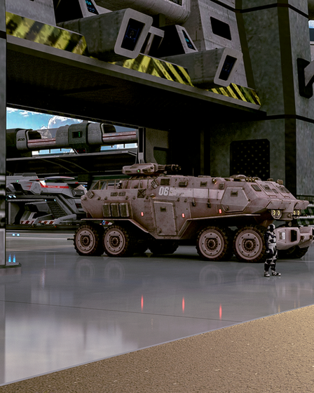 Maybe build upon this hangar so it is a sci-fi military vehicle for a clone army of the gray jacket woman!