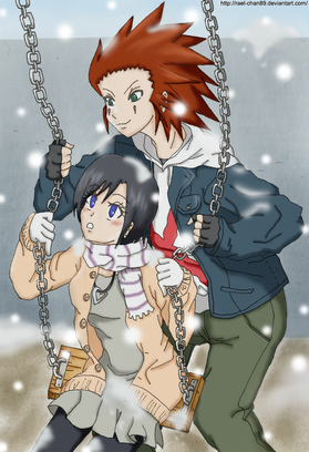 Anyway, I must admit that I love this picture. So simple, yet you can read so much from it. The coloring is wonderful (I'm so jealous!), and I love the soft-ness of the snow. Ruki and Takato look so innocent....