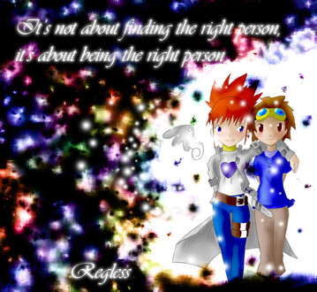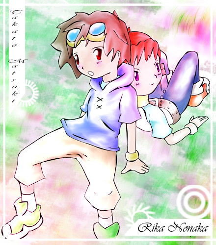 Ahhh...Rukato. It's been so long since I've seen any new artwork with this couple, and after the day I had today seeing this really made it a whole lot better. Pretty good, pretty good (are their shadows forming a heart?). I doubt though that Takato has anything too serious to worry about. I mean, it's Rika, not Lucy from the Elfen Lied anime (who most likely would have killed Takato on the spot, absent minded comment or not). But then again...