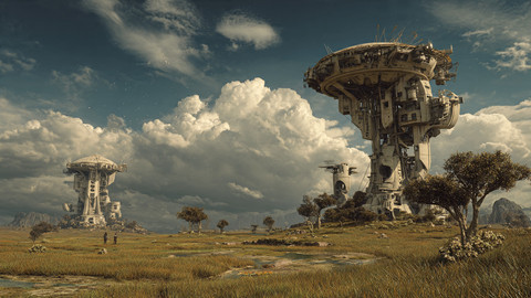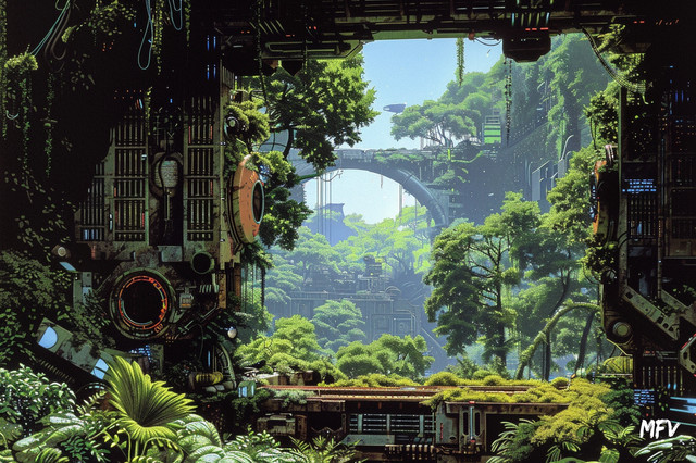 I really like the contrast you've created with the lush foliage and the factory it self. It makes Β me wonder what the story is. Is the factory abandoned and being reclaimed? Is is a secret industrial complex that needs to hide? Is it an outpost on a new planet that has explosive plant growth and it is a constant battle between the people of the factory and the vegetation of this place? There is so much story possibility here. I adore this! This is wonderful!