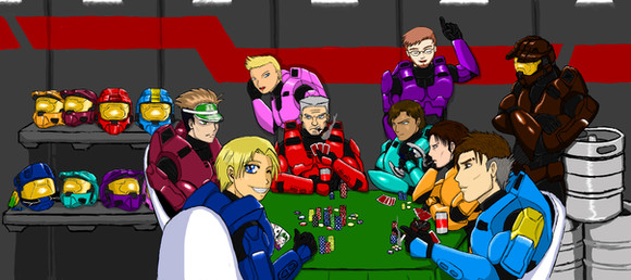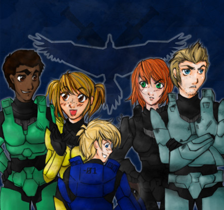 My first Red vs Blue fanart.It started out as just Wash in the front and then grew to include Church, Caboose, and Meta. I based them on Luke Mckay's designs, but with my own style mixed in.