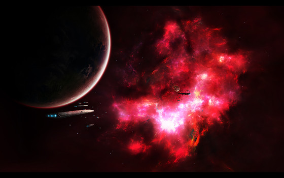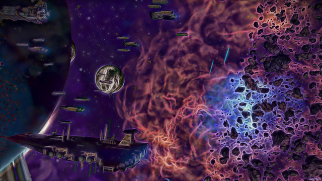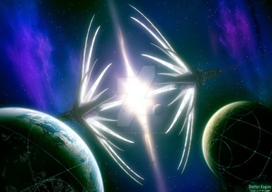 This shows an enormous stellar power and manufacturing station built around a star, similar to a Dyson sphere (or maybe more accurately a Niven ring or a Halo) A small star [usually a class G or K star] powers manufacturing and construction of interstellar spacecraft which are then sold to whomever can afford them. Raw materials are harvested from asteroids, the small inner planets, and the star itself.Related content