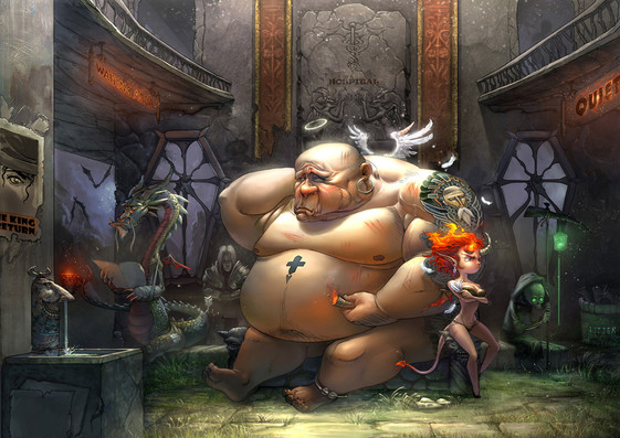 I love the color composition, the way you used the two different light sources, the addition of the haze in the air, and the overall softness of tone. Naturally, the expression on the old gnome alcemist's face, and the way you have the owl's eyes glowing up top, are perfectly symbolic of the surprise one would naturally feel after an unexpected result, and they capture the mood of this piece perfectly.Β