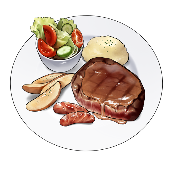 En Noir Et Blanc Item Creation By: Drasil(Filet Mignon)- A dainty and tender cut of premium beef, grilled to perfection, accompanied by a delicate cherryberry wine sauce .