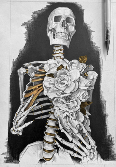 #anatomy #artist #bones #digital #drawing #drawings #flowers #gold #graphite #horror #horrorart #macabre #macabreart #myart #ribcage #skeleton #skeletons #sketch #sketches #skull #tattoo #tattoos #traditional #art #artinspo #tattooinspo