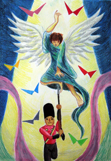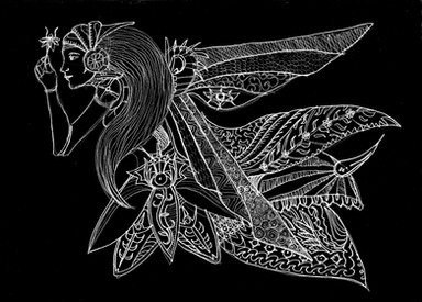 percobaan berwarna pertama membuat psychedelic art, crayon, diinvert di adobe photoshop, diambil lewat kamera hp (makanya brightnessnya ga rata)*first coloured attempt on psychedelic art, oil pastels, inverted in adobe photoshop, taken with vga cellphone camera (that's why the brightness is a failure*