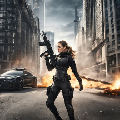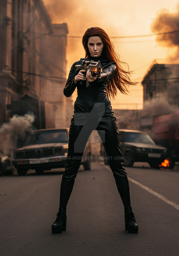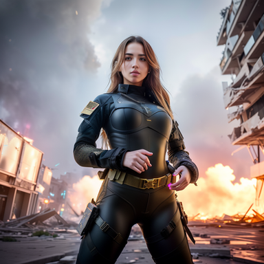 #ai #armor #military #postapocalyptic #samurai #soldiergirl #toughgirl #warrior #ai_generated_art #explosions #garterbelt #hotpants #panties #overkneesocks #fire