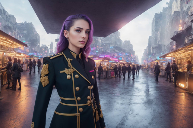 #ai #armygirl #beautifulwoman #cyberpunk #futuristiccity #militaryuniform #pinkhair #pinkhairgirl #scifi #scificharacter #uniform #armymilitary #officeruniform #dystopiancity #aigenerated #stablediffusion