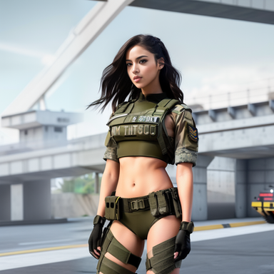 #ai #beautifulgirl #militaryuniform #soldiergirl #uniform #warriorwoman #tacticalgear #aigenerated #aiartwork #aiartgenerator #bellybutton #croptop #panties #underwear #fitgirl