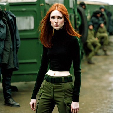 #ai #beautifulgirl #militaryuniform #soldiergirl #uniform #warriorwoman #tacticalgear #aigenerated #aiartwork #aiartgenerator #croptop #ginger #longlegs #miniskirt #gingerredhead