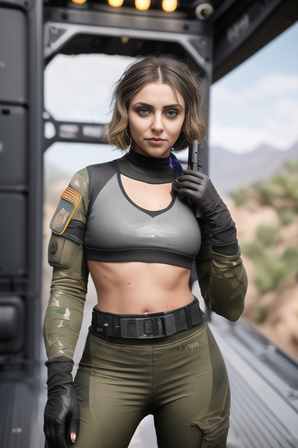 #ai #aigenerated #armygirl #beautifulgirl #croptop #freckles #hairbun #hotpants #uniform #bellypiercing #fitgirl #tacticalgear